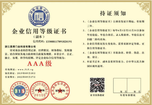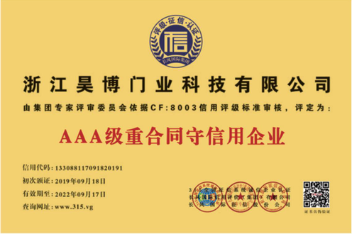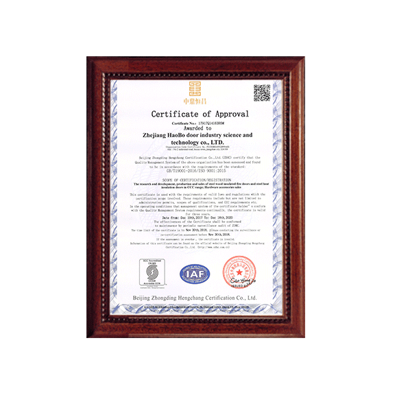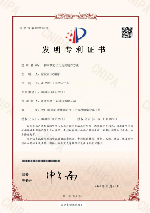 公司一直以來嚴格執(zhí)行ISO9001質(zhì)量體系和ISO14001環(huán)境管理體系標準,建立了完備的科研、開發(fā)、生產(chǎn)、銷售服務(wù)體系。公司是浙江省門業(yè)協(xié)會會員單位,江山門業(yè)協(xié)會理事單位,中國木材與木制品流通協(xié)會會員單位,江山市消防協(xié)會副會長單位。